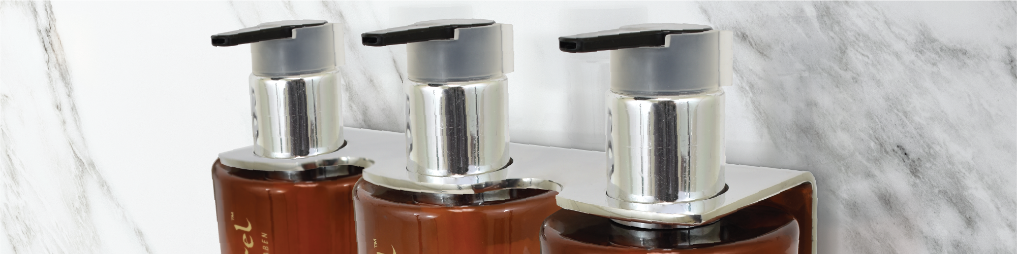 A steel frame provides a sturdy and tamper-proof sanitary option that only housekeeping could unlock with a special key. The standard wall bracket dispenser is fully customizable and easily refillable.